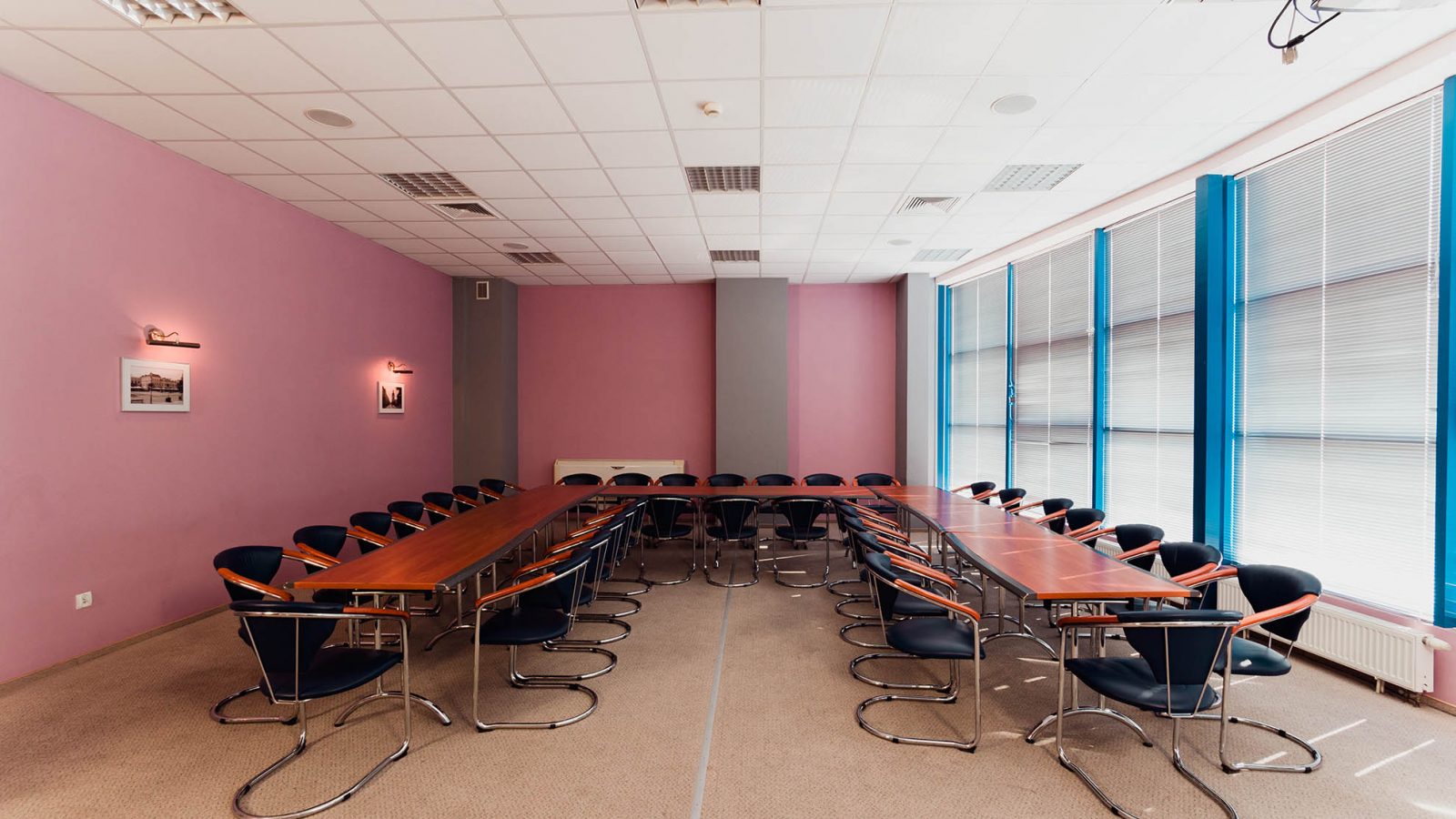 لدينا غرفة مؤتمرات أنيقة ومريحة تتسع ل 50 شخصا. غرفة الاجتماعات