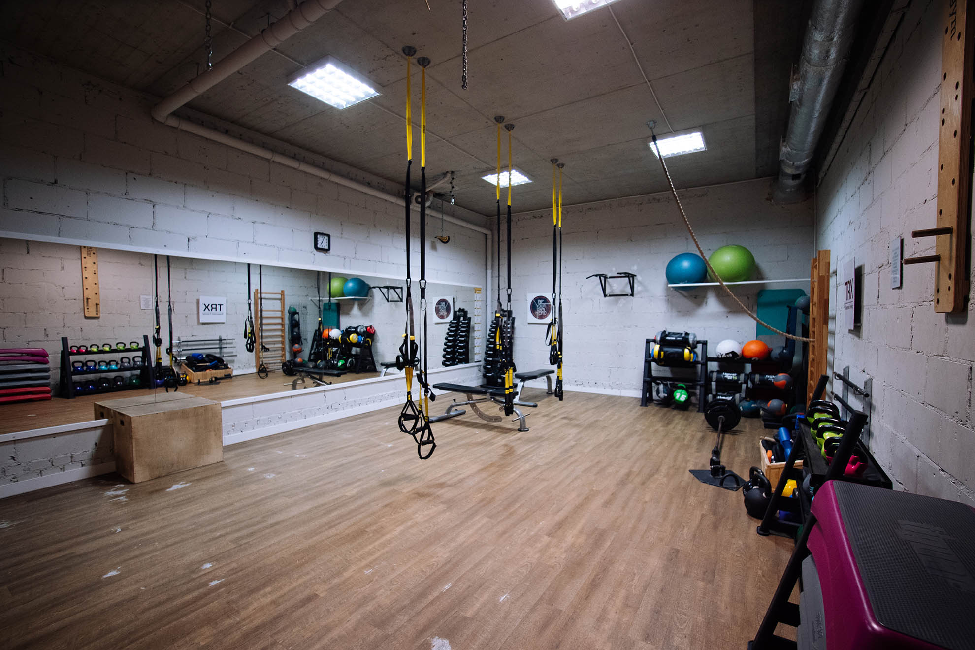 منطقة متساوية التوتر ، تقع منطقة الأوزان الحرة في الطابق الأول. غرفة تدريب TRX مع